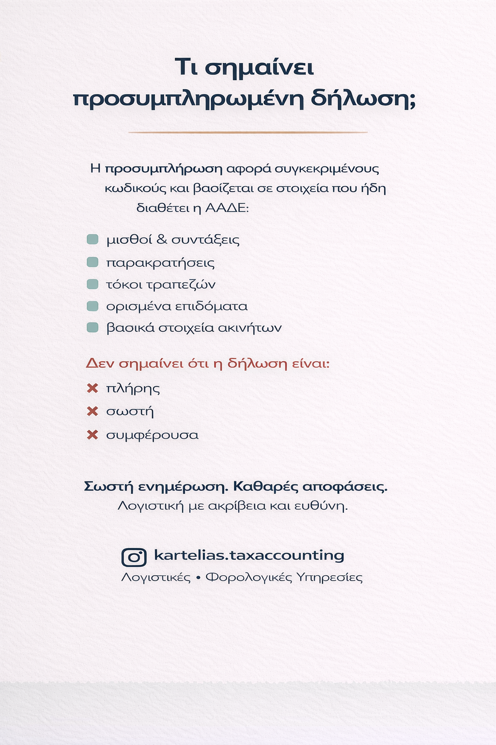 Δεν σημαίνει ότι η δήλωση είναι πλήρης και σωστή.